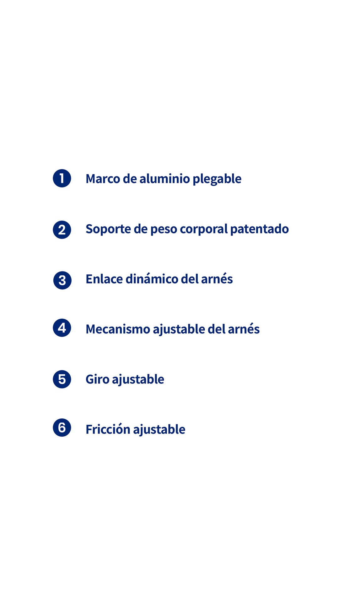 Conoce todos los componentes que el Levity incluye, diseñados para brindar un soporte óptimo a los pacientes que utilizan el dispositivo.