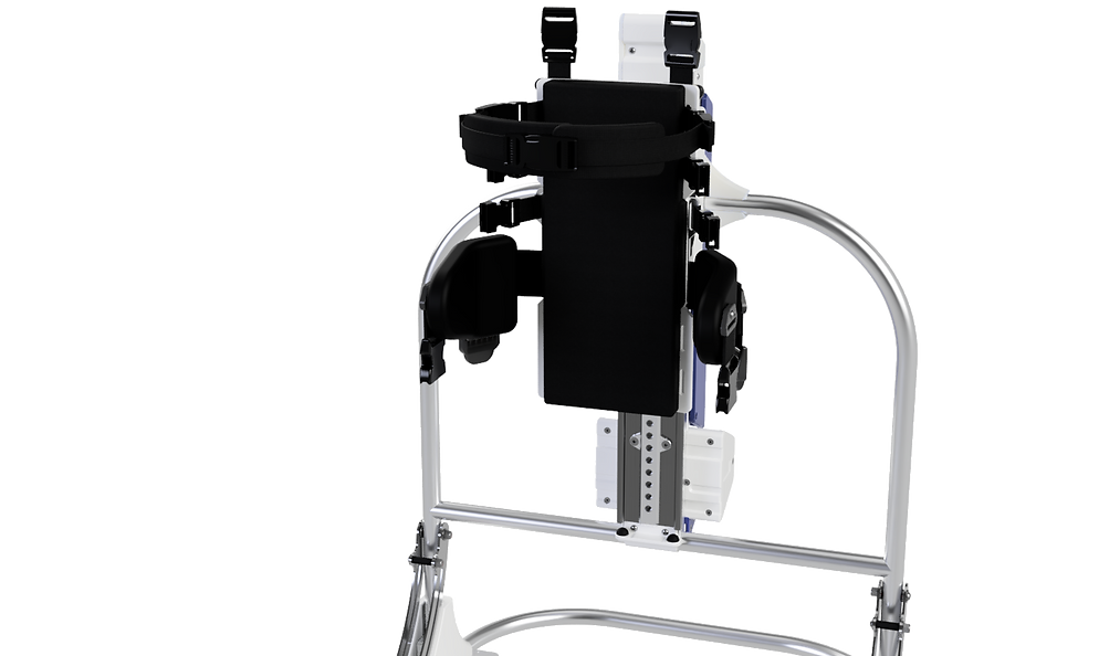 Disponible en dos tallas. Proporciona soporte adicional para ayudar al usuario a mantenerse erguido. Se fija y ajusta sin herramientas.