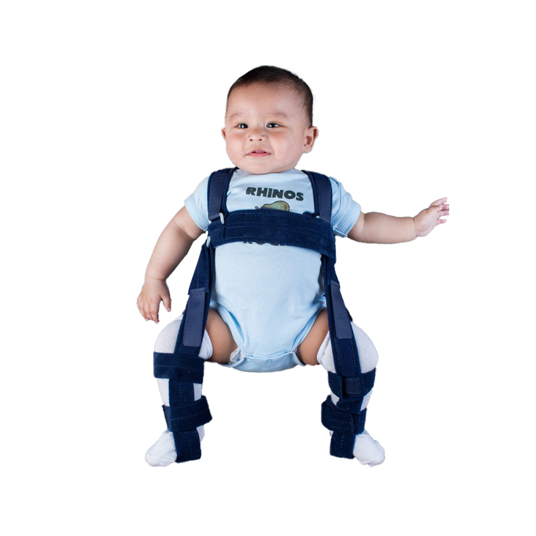 El Sistema de Férulas de Abducción de Cadera RHINO consiste en la férula de abducción de cadera RHINO y el Arnés de Pavlik RHINO.